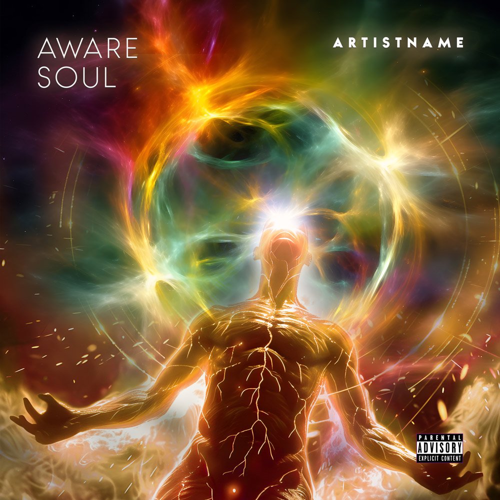 Utilize BCAW engaging artworks to help capture your audiences attention and keep them returning for more. The inclusion of the parental advisory sticker suggests its readiness for potentially explicit or intense musical content, broadening the market for the Aware Soul Spiritual Progressive Metal Psychedelic Trance Album Cover to genres like Rap and Trap with deep, introspective, or aggressive themes.