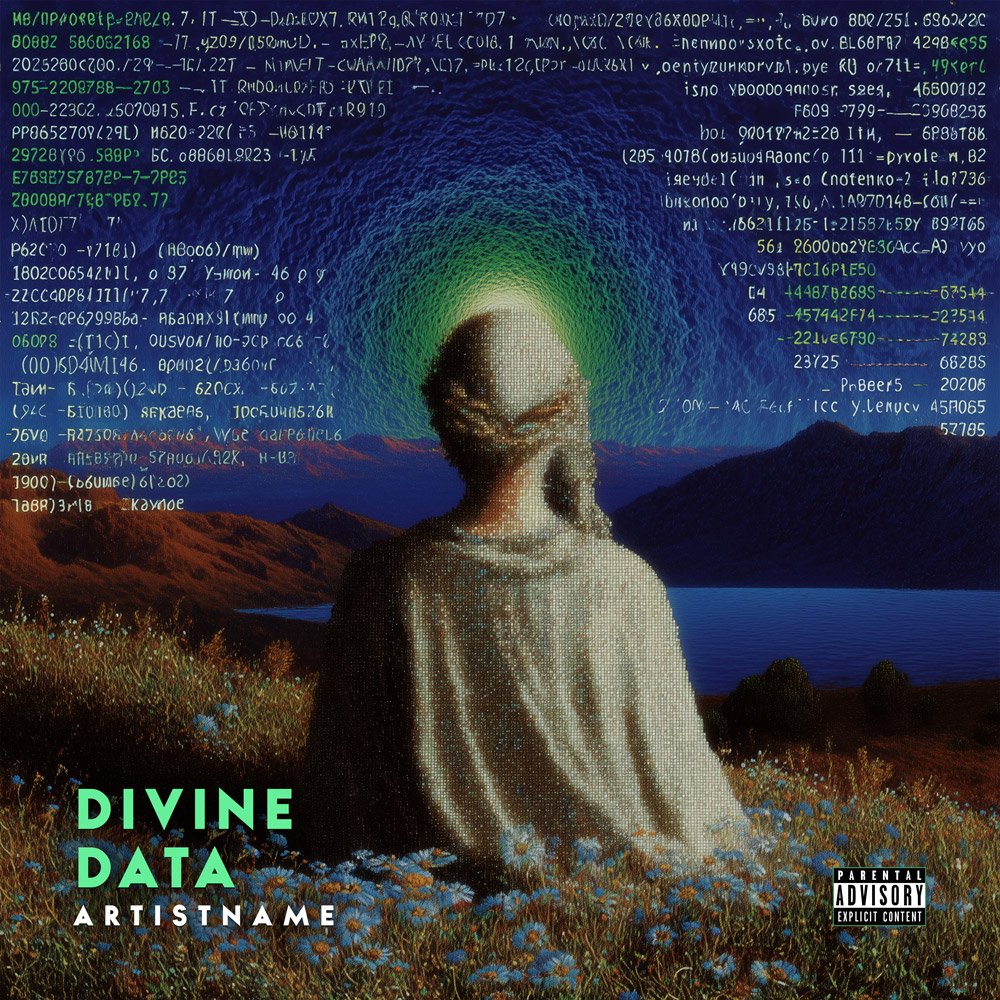Divine Data Psychedelic Glitch Ambient Album Cover Art would be great for all genres like ambient, dark ambient, psychedelic electronic, glitch, experimental, cinematic, drone, atmospheric, lo-fi, chillout, post-rock, progressive, new age, meditation, spiritual, cyberpunk, sci-fi, and avant-garde art. Its versatility allows it to adapt to various creative visions while maintaining a strong and unique identity.
