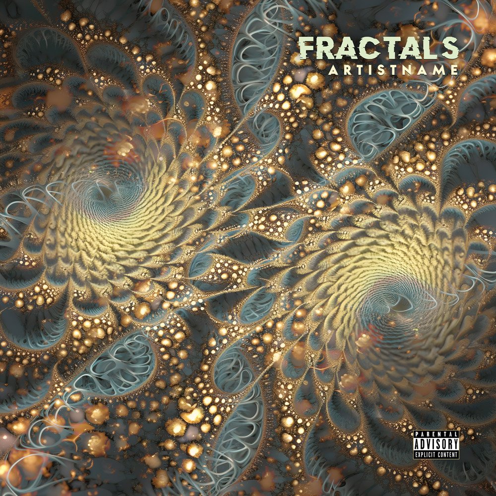The visual landscape of the Fractals Abstract Psychedelic Electronic Music Album Cover Art is a breathtaking journey into the depths of mathematical beauty and organic complexity. This masterpiece features two primary golden spiral vortices that draw the eye into an infinite loop of detail, reminiscent of biological structures and cosmic phenomena. The color palette is a sophisticated blend of shimmering golds, deep slate teals, and ethereal amber highlights. Are you an author, musician, band, artist, singer, DJ, producer, content creator, record label, or publisher searching for the perfect and unique artwork or content for your next release?