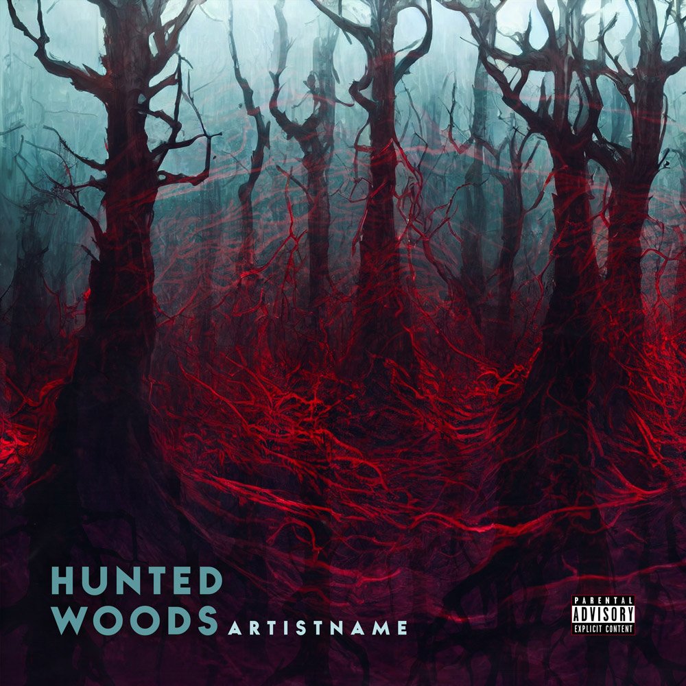 Are you an author, musician, band, artist, singer, DJ, producer, content creator, record label, or publisher searching for the perfect and unique artwork or content for your next release? We have got you covered! Hunted Woods Dark Eerie Forest Horror Album Cover Art is the ideal solution for you, providing a high-end aesthetic that resonates with dark storytelling and aggressive or atmospheric soundscapes.