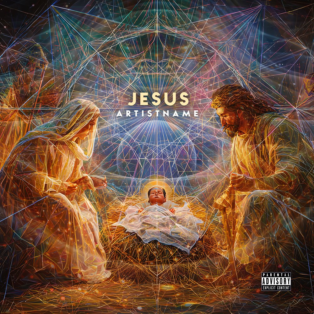 Utilize BCAW engaging artworks to help capture your audiences attention and keep them returning for more. The inclusion of the Parental Advisory warning suggests the artist is aiming for a modern, possibly controversial or boundary-pushing release, perhaps in the Hip Hop or R&B genres, where religious themes are often explored with raw, contemporary narratives. This adds a layer of versatility to Jesus Sacred Geometry Visionary Christian Art.