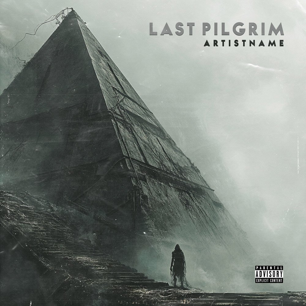Are you an author, musician, band, artist, singer, DJ, producer, content creator, record label, or publisher searching for the perfect and unique artwork or content for your next release? The search is over. Last Pilgrim Dystopian Sci-Fi Metal Artwork Exclusive Download is the ideal solution for you, offering a visual masterpiece that will immediately set your work apart. The powerful digital illustration captures a bleak, dystopian future, dominated by a massive, weathered structure that resembles a colossal, dark pyramid or ancient, monolithic building. The sheer scale of this ruinous architecture is overwhelming, suggesting a fallen civilization or an oppressive, totalitarian regime. This intense visual drama makes the Last Pilgrim Dystopian Sci-Fi Metal Artwork Exclusive Download perfect for conveying themes of isolation, struggle, and monumental power.