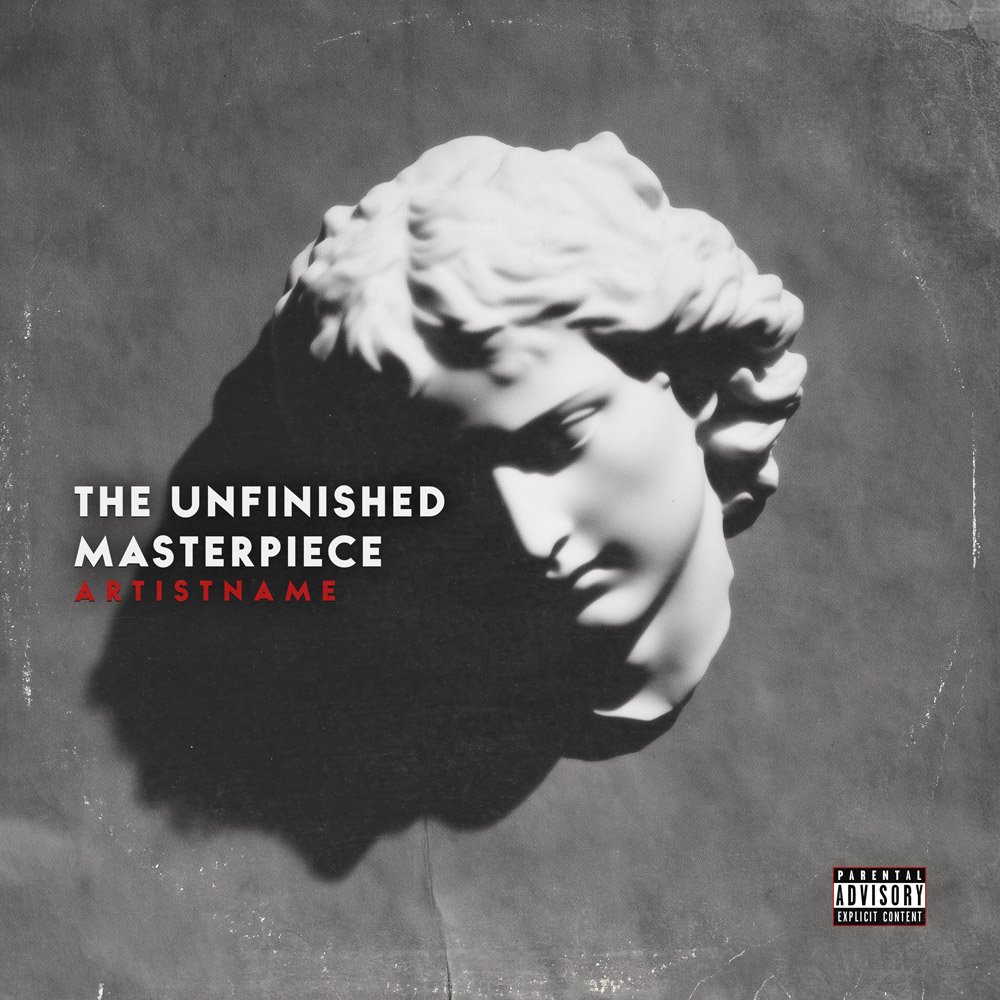 The Unfinished Masterpiece Minimalist Statue Album Cover Art is more than just a template; it is a canvas for your identity. The red text used in the “Artist Name” placeholder demonstrates how a single splash of color can pop against the monochrome background. You can choose to keep this red for a “blood and stone” aesthetic, or change it to gold, silver, or neon green to shift the genre of the piece entirely. This level of customization ensures that the final product feels like a custom commission rather than a ready-made purchase.